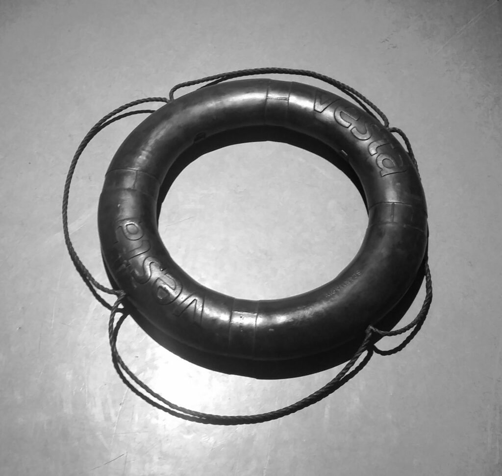 The Lifebuoy is thrown out on a leash, it is logical, and it’s the only way you will successfully bring somebody in. I suppose the same logic could b applied to aid, isn’t it given on a leash that creates a cycle of total dependence? Where one keeps coming for more but also on the part of the aid worker who keeps feeling a sense of worth…